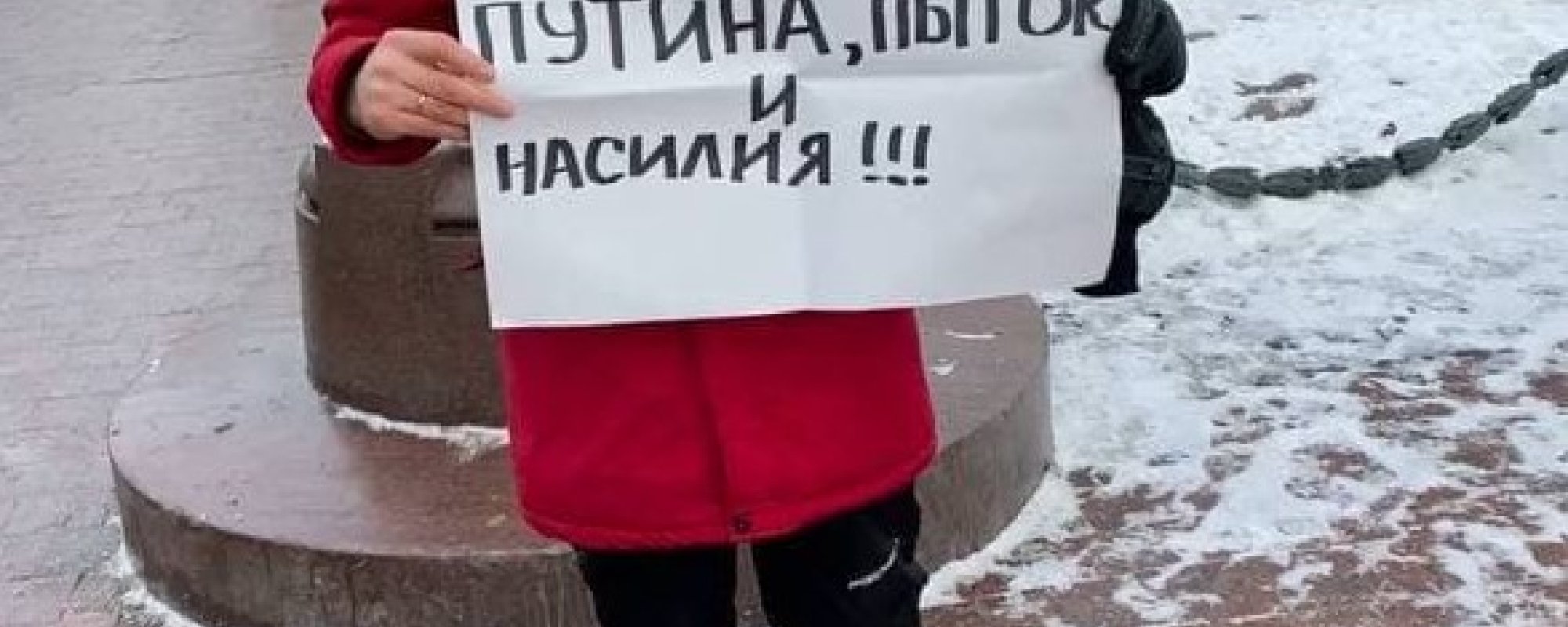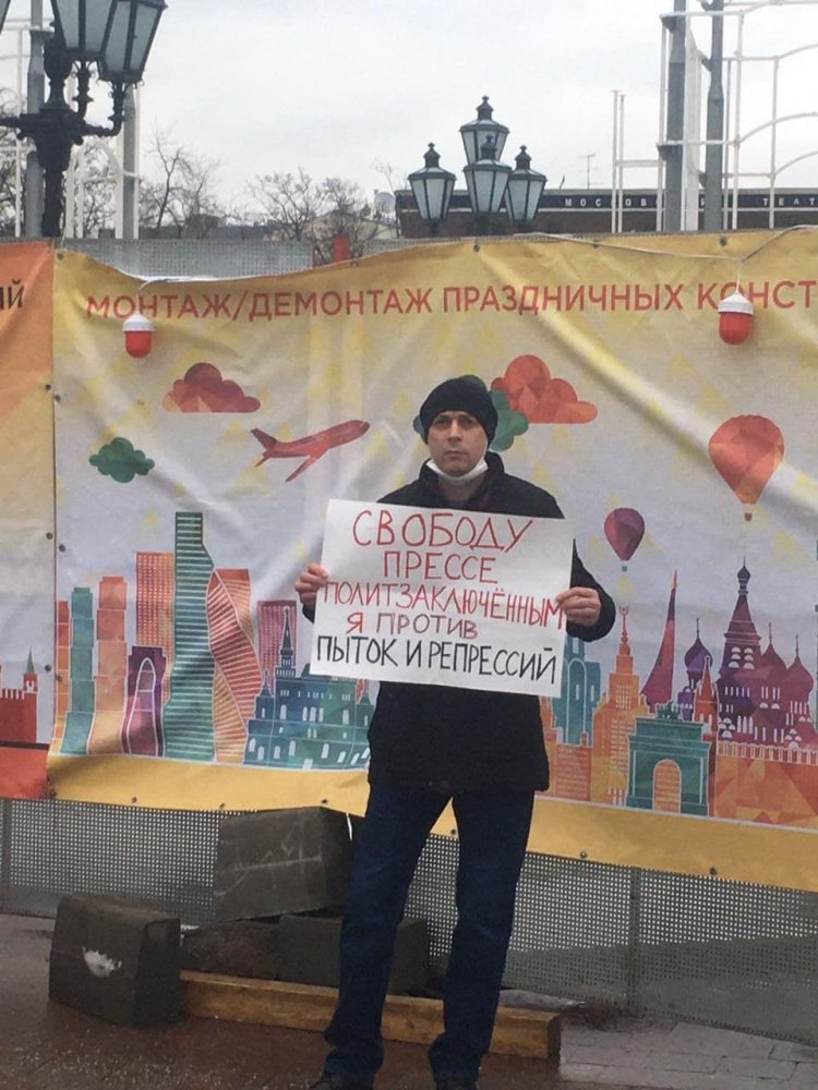 Он держал плакат «Россия без Путина, пыток и насилия».