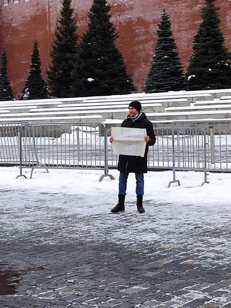 На Красной площади в Москве силовики задержали пикетчика Азата Музафарова. Об этом он сам сообщил ОВД-Инфо.