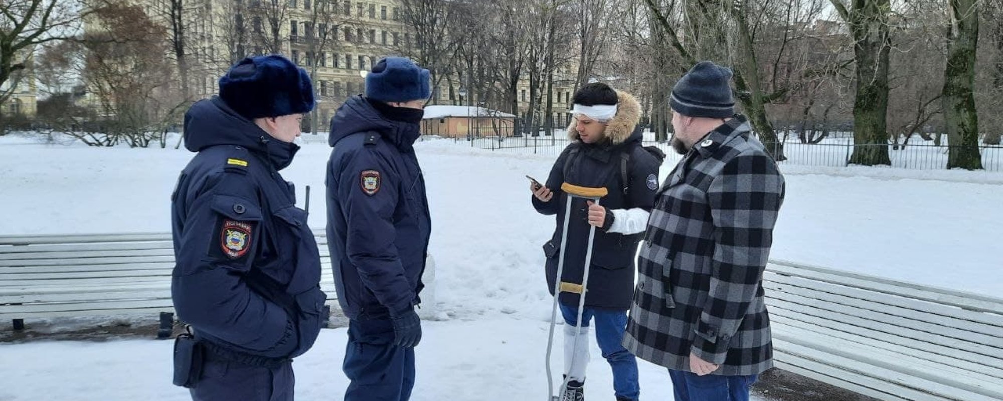 Полицейские в Петербурге задержали четырех человек, которые пришли к Смольному на костылях в поисках ответственных за уборку улиц. Об этом сообщает издание Znak.