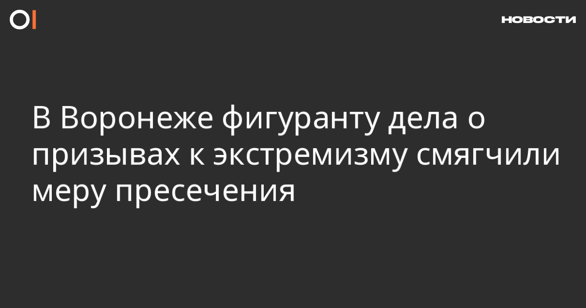 Центральный районный суд Воронежа смягчил меру пресечения гражданскому активисту Григорию Северину, которого обвиняют по статье о призывах к экстремизму (ч. 2 ст. 280 УК). Об этом ОВД-Инфо сообщили его близкие.