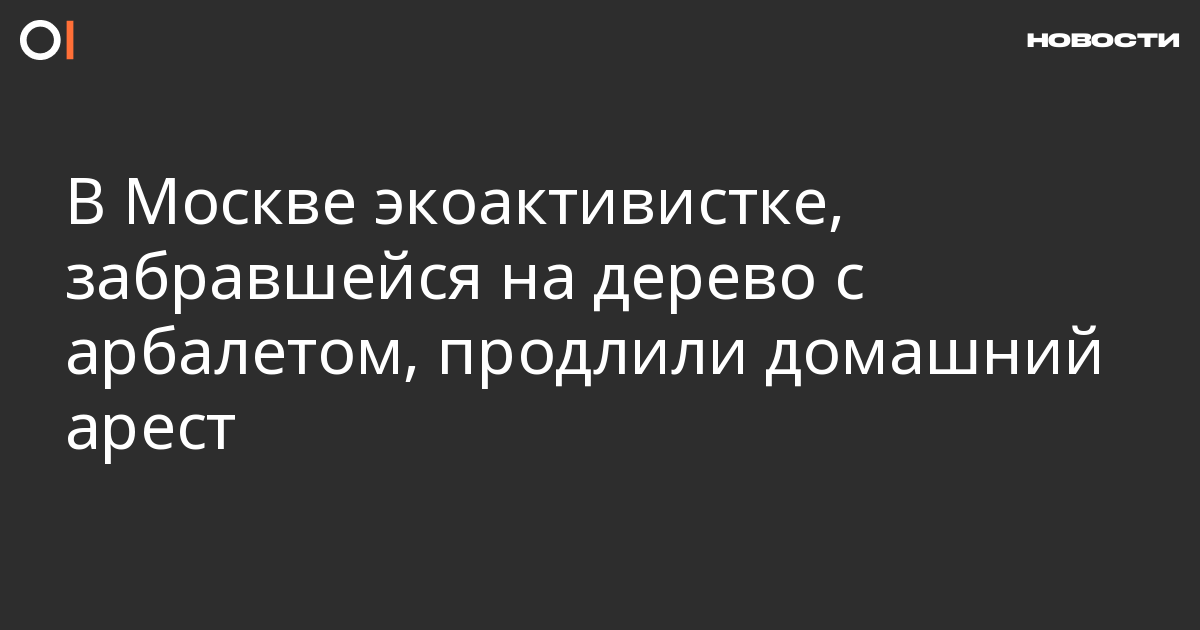 Бабушкинский районный суд Москвы продлил домашний арест Ольге Кузьминой, обвиняемой по статье о хулиганстве (ч. 2 ст. 213 УК) из-за того, что она, взяв арбалет, залезла на дерево в рамках протеста против реновации. Об этом сообщает адвокат от ОВД-Инфо Катерина Тертухина, защищающая активистку.