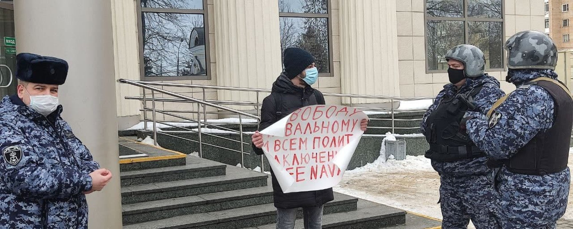 В Москве у Мосгорсуда задержали мужчину, который вышел в одиночный пикет в поддержку Алексея Навального. Об этом сообщает SOTA.