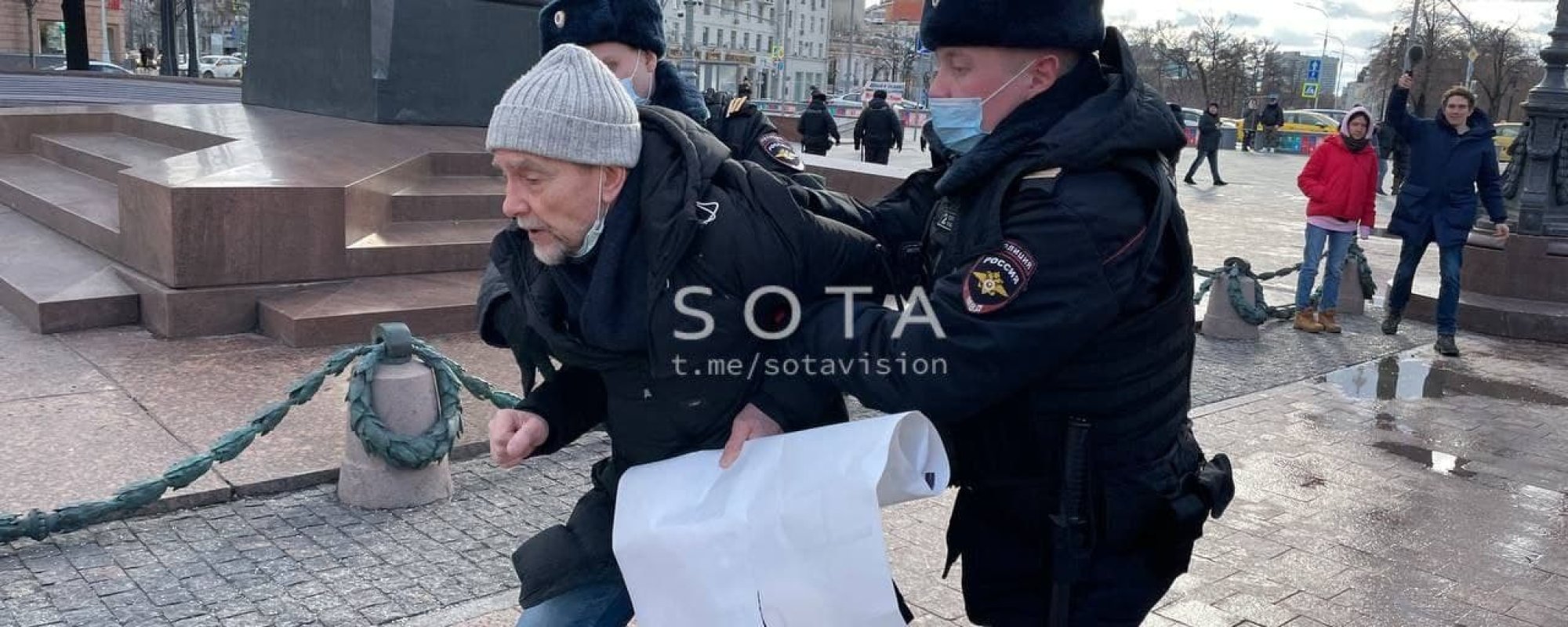 В Москве на Пушкинской площади задержали шесть человек, участвовавших в одиночных пикетах против войны с Украиной: Льва Пономарева, Михаила Кригера, Николая Рекубратского, Юрия Самодурова, Михаила Удимова и Ольгу Мазурову. Об этом ОВД-Инфо сообщила Ольга Мазурова.