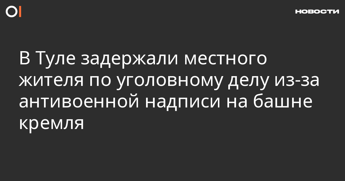 В Туле полицейские задержали местного жителя Дмитрия Козырева по уголовному делу из-за антивоенной надписи на башне городского кремля. Об этом ОВД-Инфо сообщил друг Козырева.