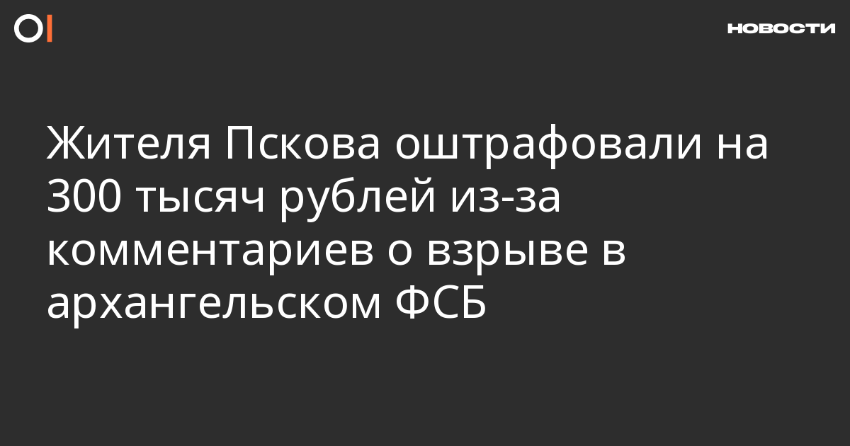 Второй западный окружной военный суд в Москве приговорил 48-летнего жителя Пскова Алексея Шибанова к 300 тысячам рублей штрафа из-за его публикаций в «ВКонтакте» о взрыве в архангельском ФСБ. Об этом сообщают «Север.Реалии» со ссылкой на его адвоката.