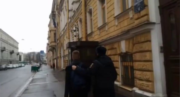 13:45 Соратник задержанного сообщил ОВД-Инфо, что сотрудник полиции при консульстве отобрал телефон у Травкина телефон — активист обратил на это внимание после просмотра видео с акции.