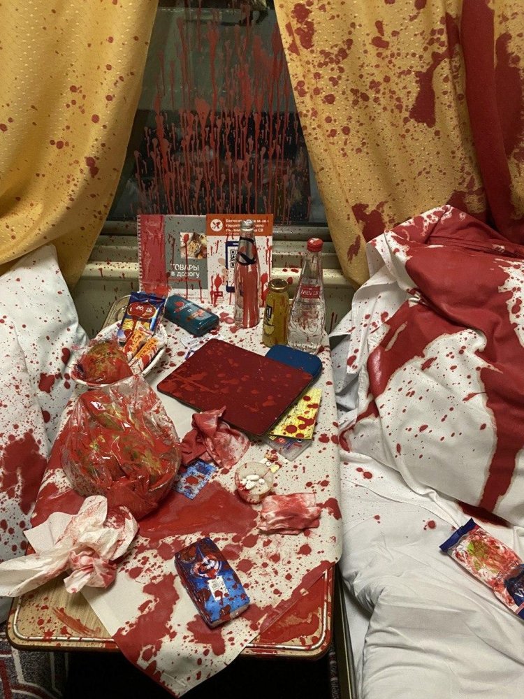 Двое мужчин зашли в вагон поезда, а затем один из них облил журналиста и купе, в котором он ехал, масляной красной краской с ацетоном.