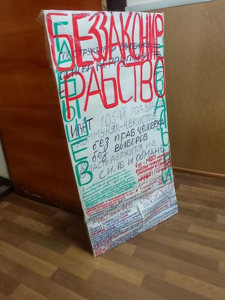 В Новосибирске полиция задержала пикетчицу Зинаиду Горбатенко. Он стояла на площади Ленина с плакатом за права человека и в поддержку политзаключенных. Об этом ОВД-Инфо сообщила очевидица Дарья Горбылева.