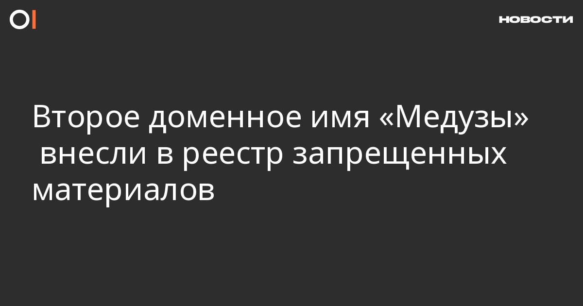 Второе доменное имя «Медузы» внесли в реестр запрещенных материалов по решению Генпрокуратуры от 16 марта. Об этом сообщает издание.