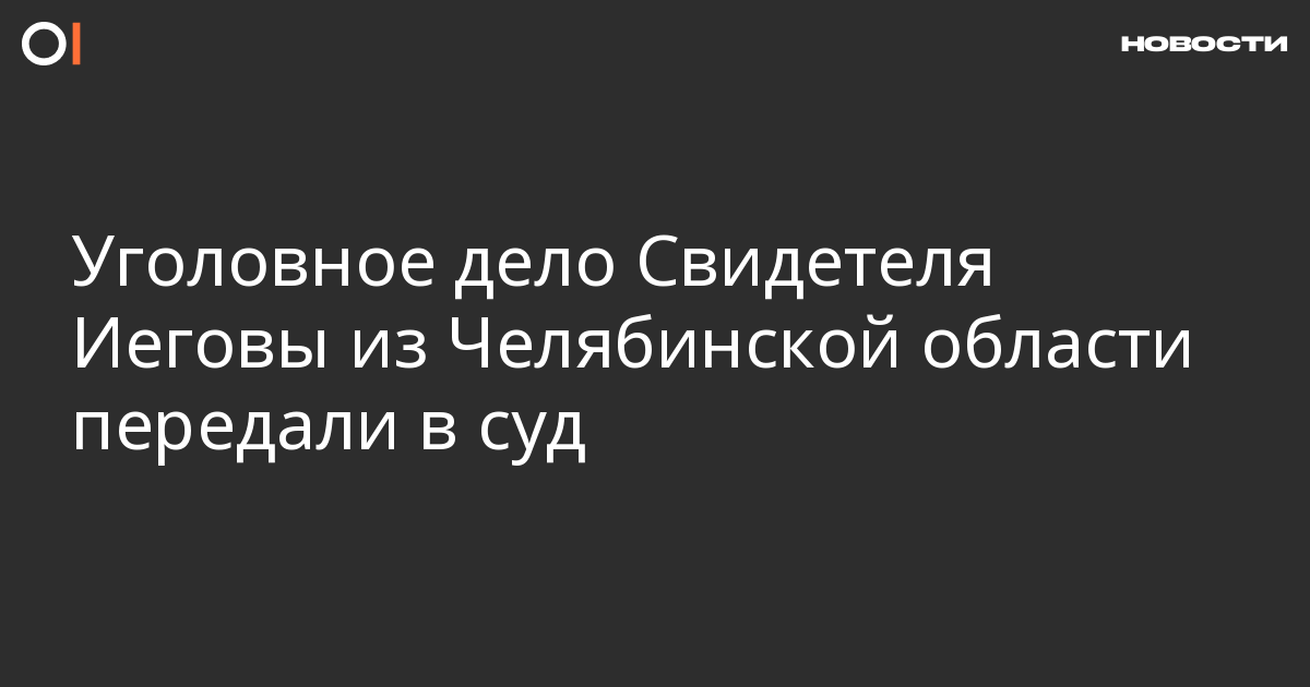 Следствие завершило расследование дела Свидетеля Иеговы из Снежинска Ильи Оленина. Дело передали в суд. 43-летний верующий обвиняется в организации деятельности экстремистской организации (ч. 1 ст. 282.2 УК). Об этом сообщается на сайте «Свидетели Иеговы в России».