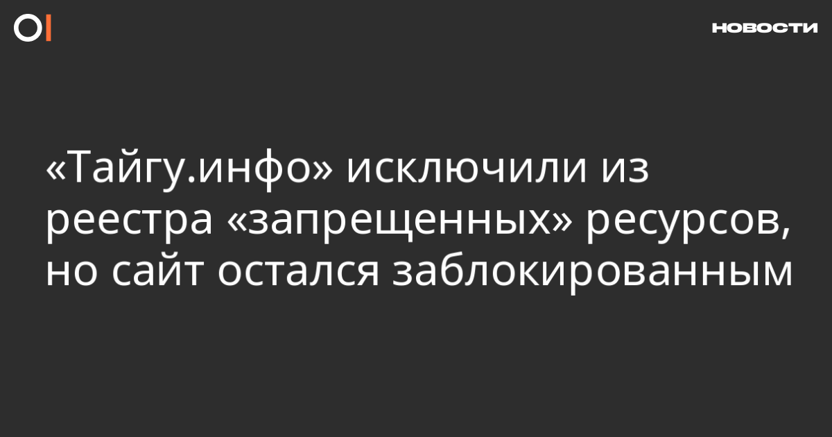 Сайт «Тайга.инфо» исключили из реестра «запрещенных» ресурсов, но только по одному решению Генпрокуратуры. По другому решению сайт до сих пор там. Об этом сообщает «Роскомсвобода».