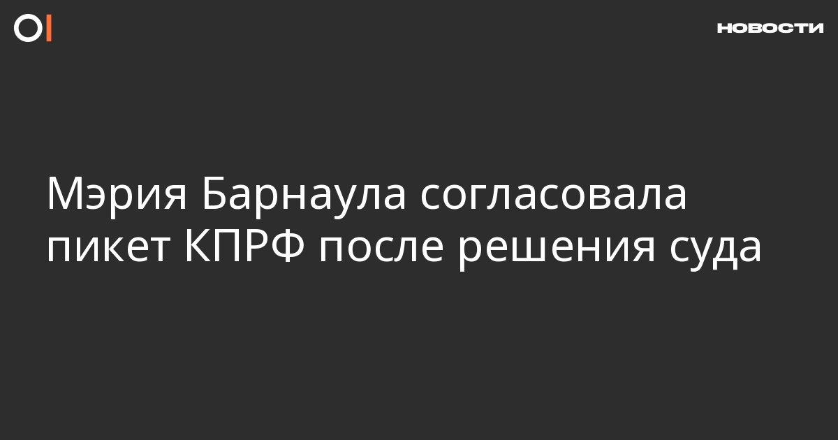 17 мая мэрия Барнаула согласовала пикет «Против повышения цен!», заявленный горкомом КПРФ. Власти города исполнили решение барнаульского суда, который признал незаконным отказ в согласовании мероприятия. Об этом сообщается на сайте краевого комитета партии.