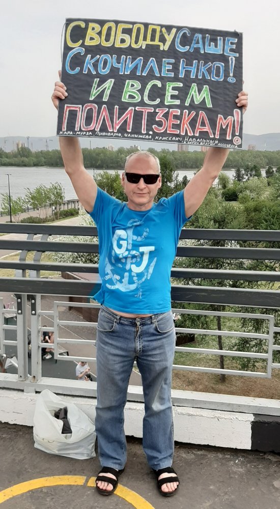 В Красноярске полицейские задержали Александра Капустина, вышедшего на одиночный пикет в поддержку Александры Скочиленко и других политзаключенных. Об этом он сам рассказал ОВД-Инфо.