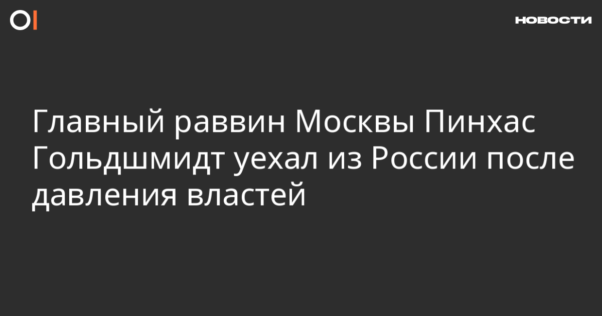 15:05 В Московской хоральной синагоге отрицают, что отъезд Гольдшмидта связан с давлением со стороны властей, передает RTVi. Его решение объяснили личными причинами. «У него сначала внук родился, а потом отец в больнице оказался, поэтому он временно уехал», — рассказали в синагоге.