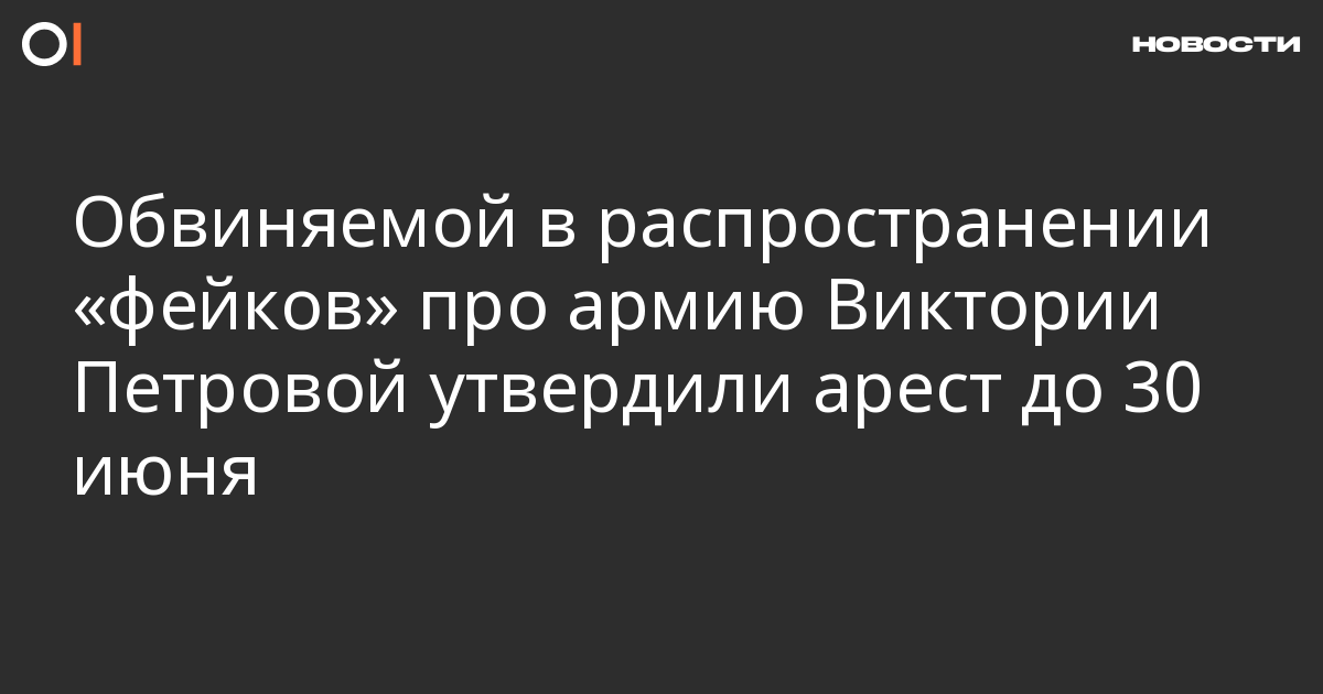 Суд в Санкт-Петербурге оставил в силе решение об аресте Виктории Петровой, обвиняемой в распространении «фейков» об армии РФ по мотивам политической ненависти (п. «д» ч. 2 ст. 207.3 УК), до 30 июня. Об этом сообщает издание «Бумага».