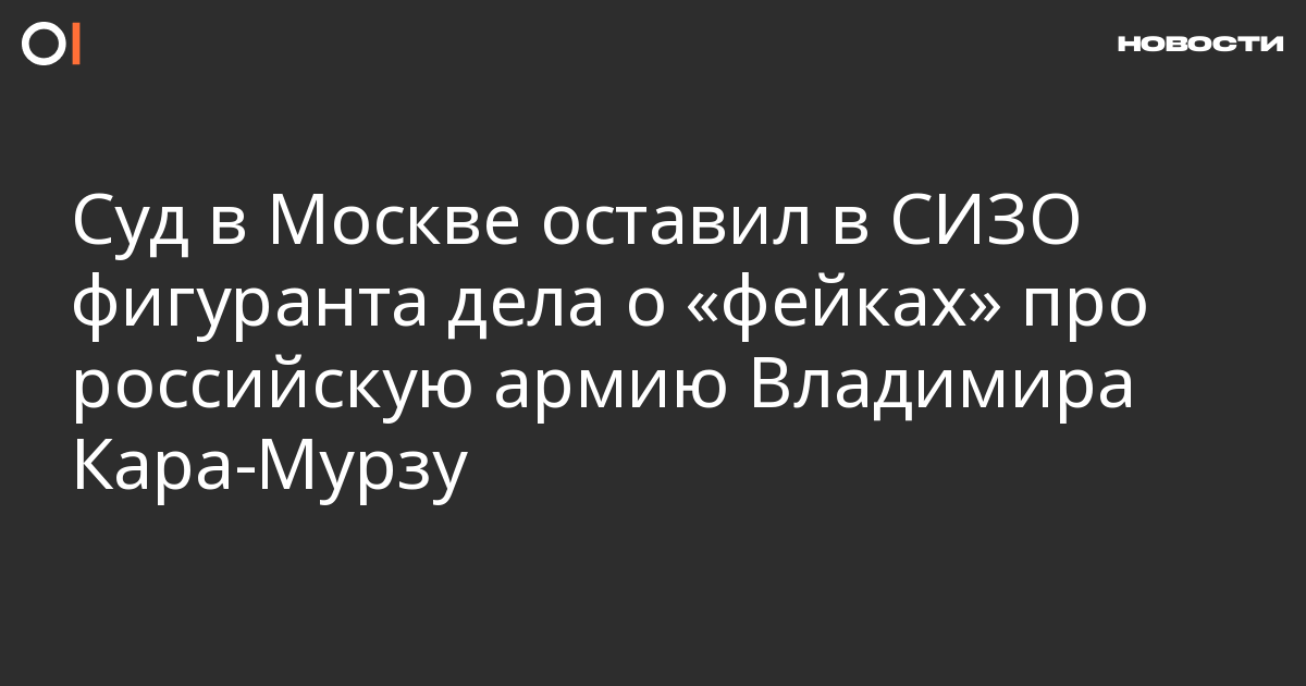 Мосгорсуд утвердил арест политика Владимира Кара-Мурзы по делу о «фейках» про российскую армию (п. «д» ч. 2 ст. 207.3 УК). Об этом сообщает SOTA.