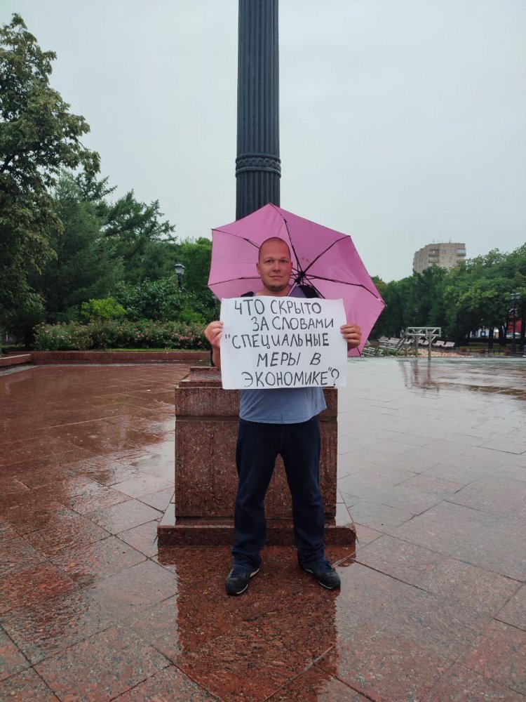 В Москве на Пушкинской площади задержали Дмитрия Коваля, который вышел с плакатом «Что скрыто за словами „специальные меры в экономике?“». Об этом ОВД-Инфо сообщил сам задержанный.