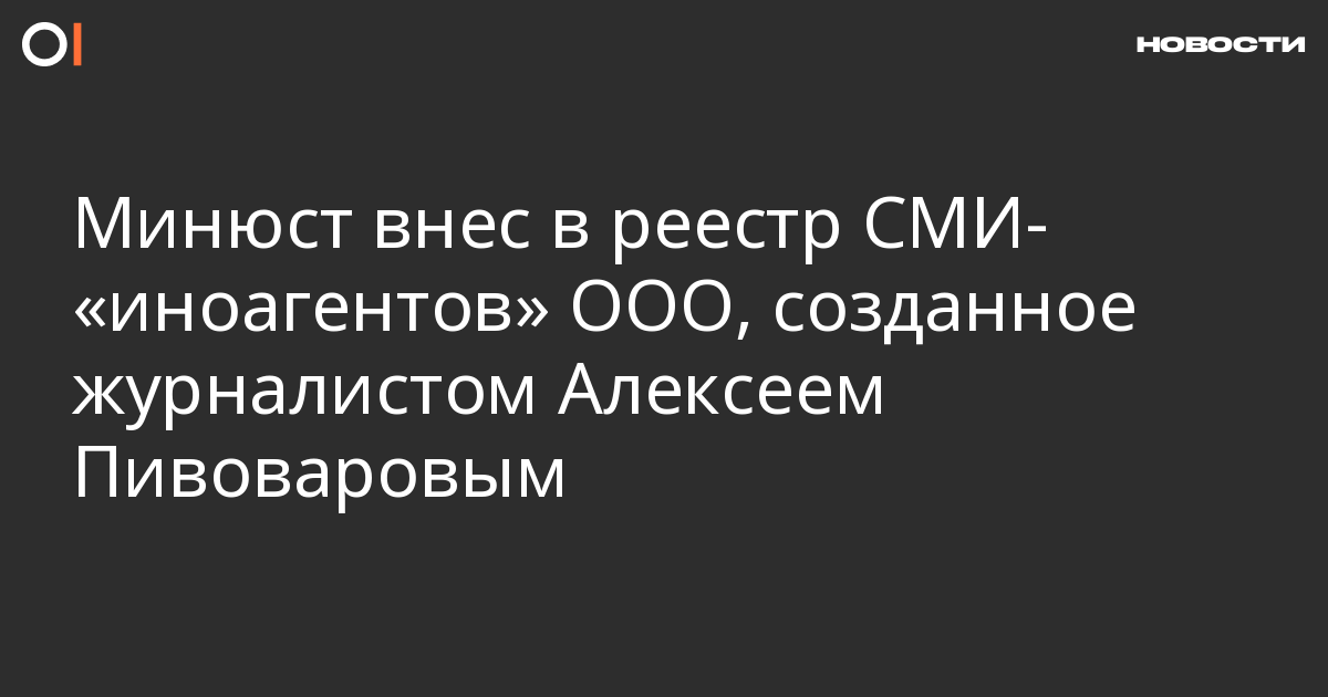 Минюст внес в перечень СМИ — «иностранных агентов» общество с ограниченной ответственностью «Вертолет и ко», созданное журналистом Алексеем Пивоваровым. Информация об этом опубликована на сайте ведомства.