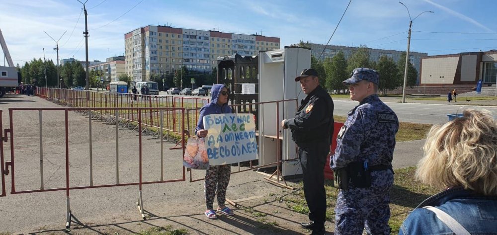 В городе Усинск (Республика Коми) силовики задержали двоих жительниц деревни Новикбож Надежду Панченко и Галину Чупурову, которые вышли с одиночными пикетами против добычи нефти. Об этом ОВД-Инфо рассказала Чупурова.