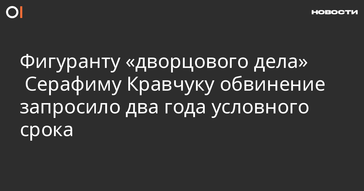 Гособвинение запросило фигуранту «дворцового дела» Серафиму Кравчуку два года условного срока с испытательным сроком два года. Об этом сообщил адвокат от ОВД-Инфо Михаил Бирюков, который представляет интересы Кравчука в суде.