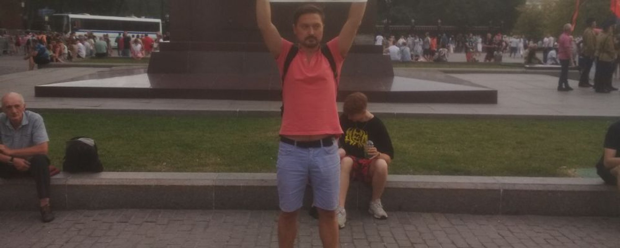 На Манежной площади в Москве задержали Алексея Кутенкова, который проводил пикет с плакатом «Остановите уничтожение Битцевского леса». Об этом сообщил защитник от ОВД-Инфо Евгений Куракин, помогающий пикетчику в отделе.