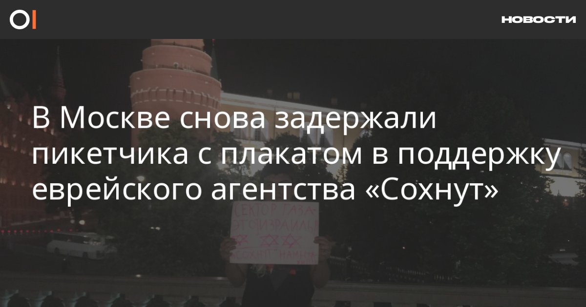 В Москве возле Кремля задержали пикетчика Михаила Суслина, выступившего в поддержку еврейского агентства «Сохнут», которое Минюст ранее потребовал ликвидировать. Об этом ОВД-Инфо сообщил сам Суслин.