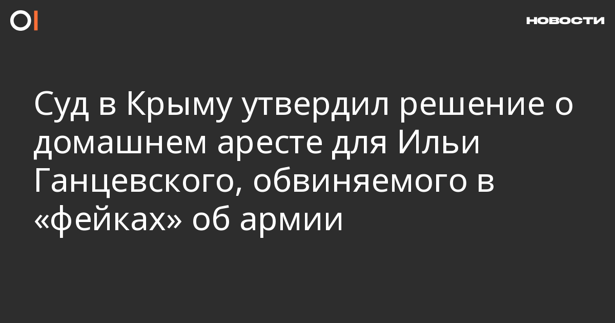 Верховный суд Крыма оставил в силе решение о продлении домашнего ареста для местного жителя Ильи Ганцевского, написавшего антивоенный пост в инстаграме. Об этом сообщает адвокат от ОВД-Инфо Роман Котенев, который представляет крымчанина в суде.