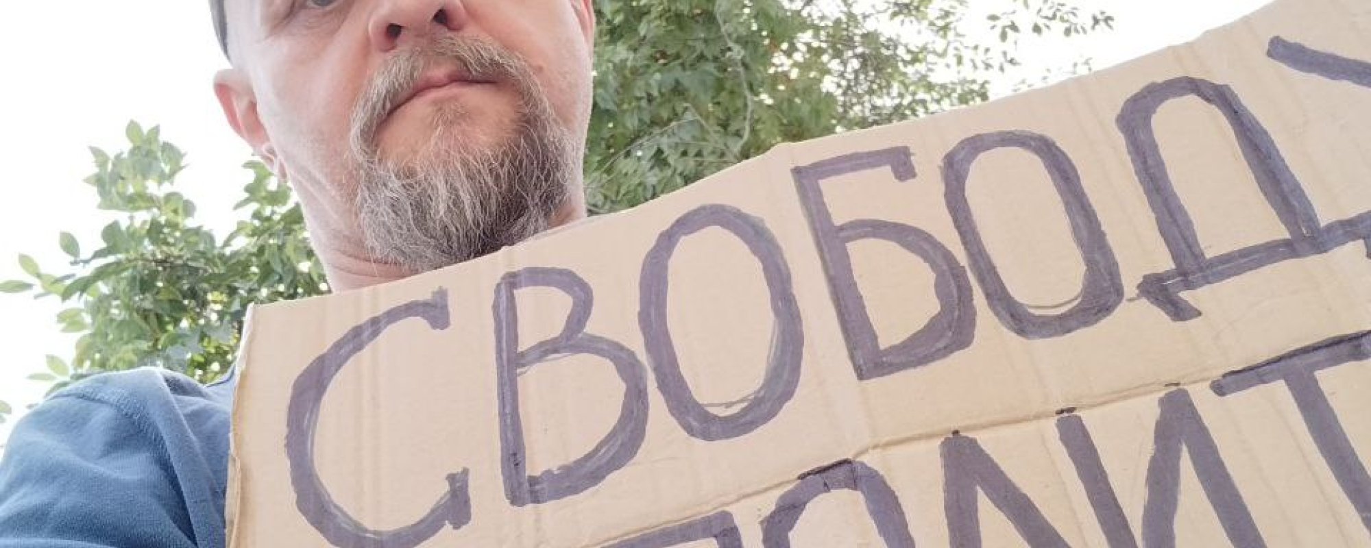 В Москве задержали пикетчика Александра Злобина из-за плаката в поддержку политзаключенных. Об этом он сам рассказал ОВД-Инфо.