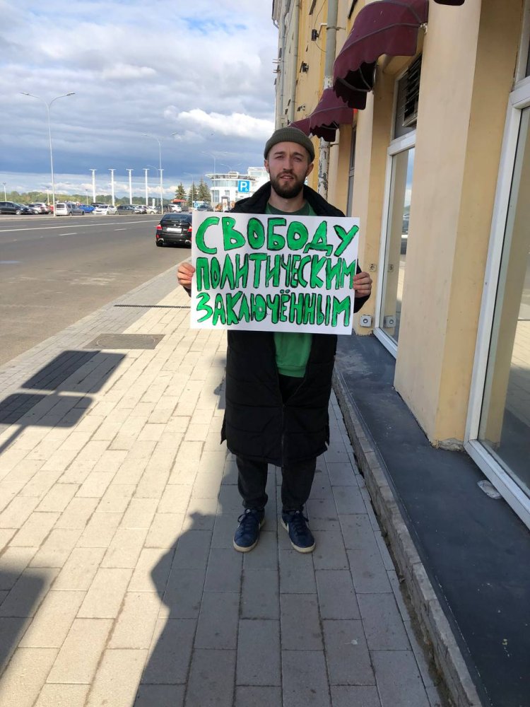 В Нижнем Новгороде силовики задержали пикетчика Александра Дикунова, который вышел на улицу с плакатом «Свободу политзаключенным». Об этом ОВД-Инфо рассказала его жена.