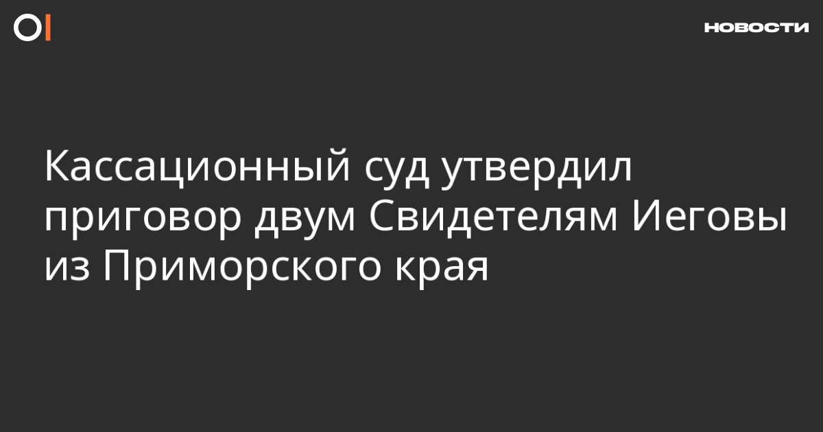 18 октября Девятый кассационный суд общей юрисдикции во Владивостоке оставил без изменений приговор Свидетелям Иеговы Юрию Белослудцеву и Сергею Сергееву из Лучегорска. Об этом сообщает портал, освещающий преследования верующих в России.