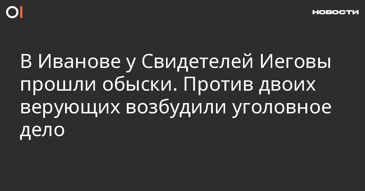 9 ноября в Иванове у трех Свидетелей Иеговы прошли обыски, против двоих верующих возбудили уголовное дело. Об этом ОВД-Инфо сообщила пресс-служба Европейской ассоциации Свидетелей Иеговы.