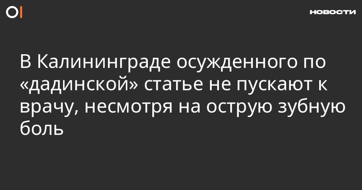 Калининградского активиста Вадима Хайруллина, отбывающего приговор по «дадинской» статье, не пускают к врачу, несмотря на острую зубную боль. Об этом со ссылкой на его друзей пишет Activatica.