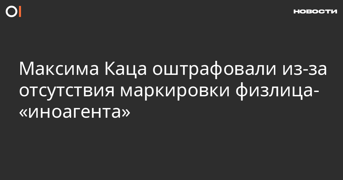 Хорошевский районный суд Москвы оштрафовал блогера Максима Каца на 15 тысяч рублей из-за отсутствия маркировки физлица — «иностранного агента» (ч. 2 ст. 19.7.5-4 КоАП). Об этом сообщил глава правозащитной организации «Агора» Павел Чиков. Правозащитник указывает, что это первый подобный штраф, о котором стало известно.