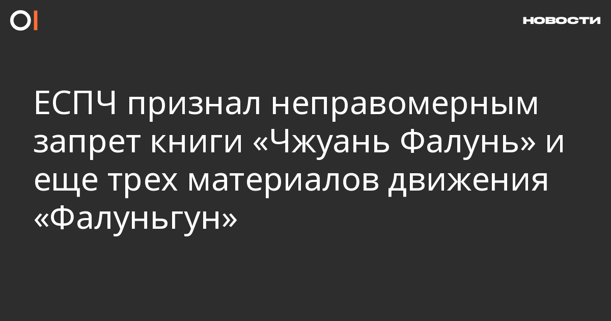 Европейский суд по правам человека признал неправомерным признание экстремистскими книги «Чжуань Фалунь» и еще трех материалов движения «Фалуньгун». Постановление опубликовано на официальном сайте 31 января.