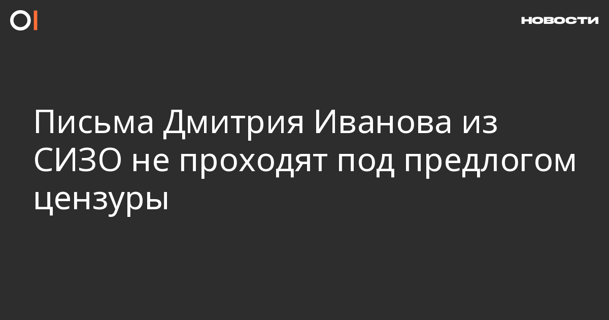 Иванов передал через своего адвоката Марию Эйсмонт, что написал заявление на имя начальника СИЗО с просьбой разъяснить причину цензурирования. Он предполагает, что брак писем происходит из-за смены цензора в изоляторе.