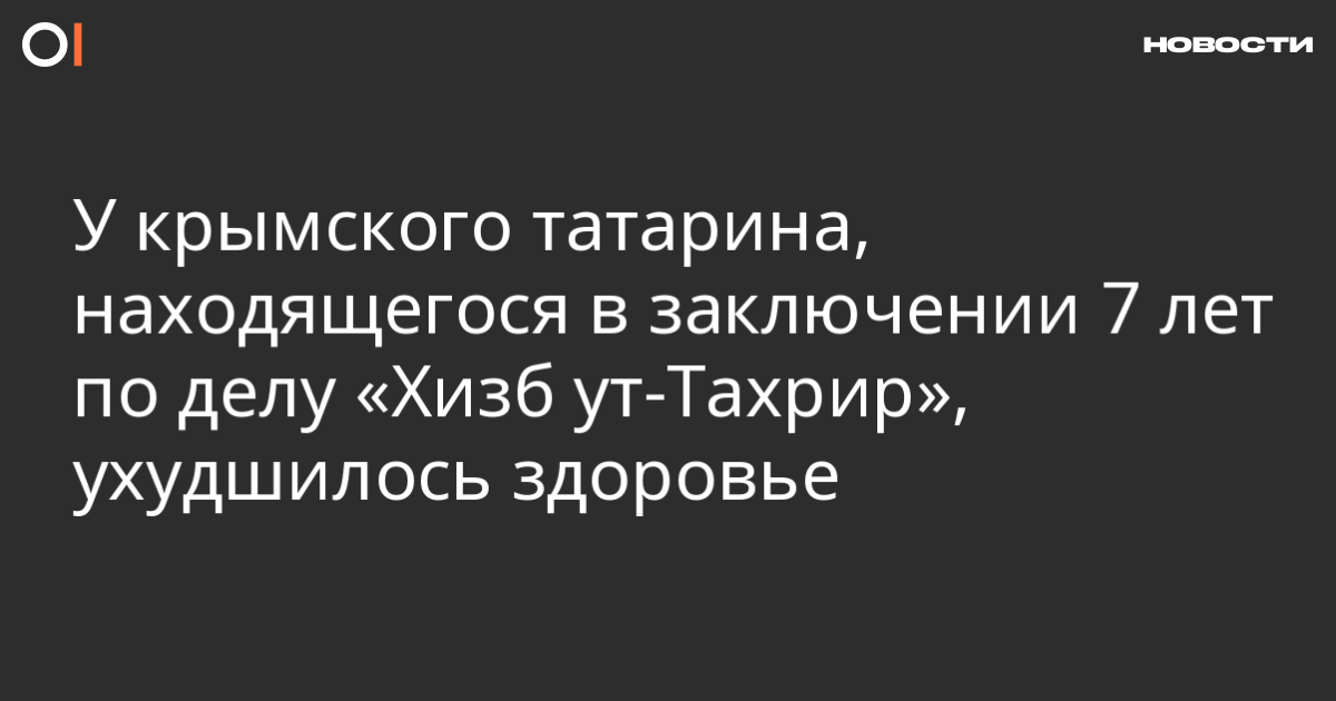 У крымского татарина Зеври Абсеитова, осужденного по делу «Хизб ут-Тахрир», ухудшилось состояние здоровья в исправительной колонии № 1 Ставрополья. Об этом пишет «Крымская солидарность» со ссылкой на жену Абсеитова, Фатму.