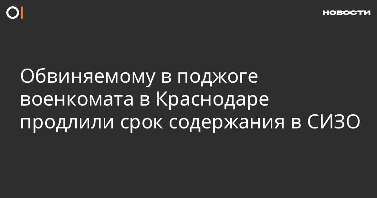 Октябрьский районный суд Краснодара 24 марта продлил на два месяца срок содержания в СИЗО обвиняемому в поджоге военкомата Олегу Важдаеву. Об этом сообщает «Зона солидарности».