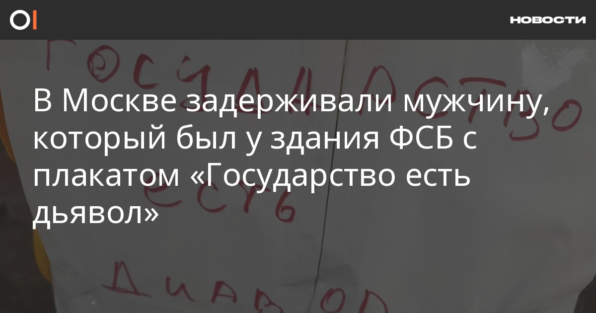 Сотрудники полиции задержали в Москве мужчину, который был у здания ФСБ с плакатом «Государство есть дьявол» на рюкзаке «Яндекс.Еды». Его уже отпустили. Об этом ОВД-Инфо сообщил сам задержанный, пожелав при этом остаться анонимным.