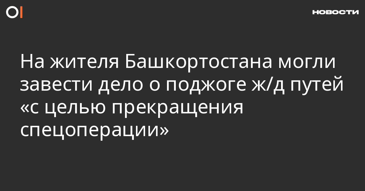Против 22-летнего жителя города Сибай (республика Башкортостан) Алика Багаутдинова могли возбудить уголовное дело о поджоге железнодорожных путей «с целью прекращения спецоперации России на Украине». Об этом 10 марта сообщило РБК.
