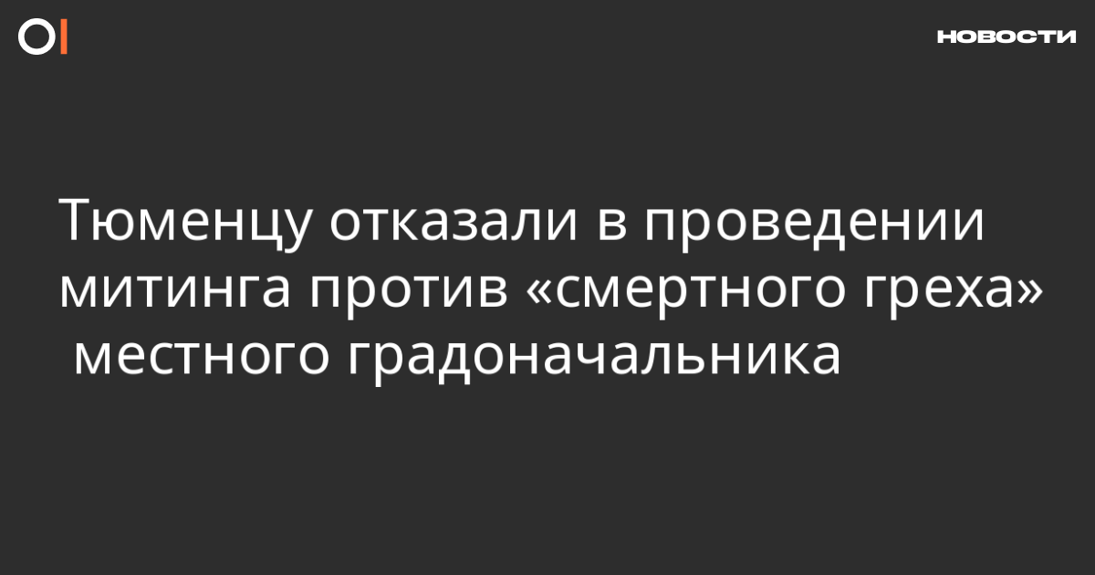 Тюменскому активисту Юрию Рябцеву отказали в проведении митинга, который он хотел собрать, чтобы привлечь внимание к «смертному греху» главы города Руслана Кухарука. Об этом Рябцев сам сообщил ОВД-Инфо.