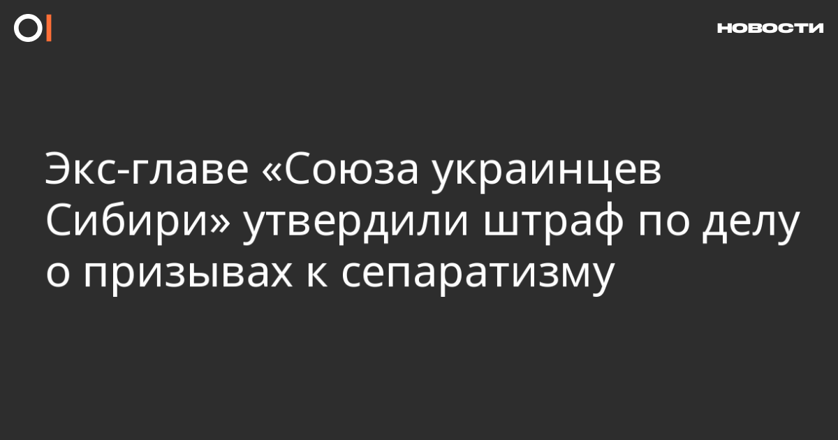 Новосибирский областной суд утвердил штраф по статье о призывах к сепаратизму (ч. 2 ст. 20.3.2 КоАП), назначенный экс-главе «Союза украинцев Сибири» Сергею Иващенко. Об этом сообщают «Сибирь.Реалии».