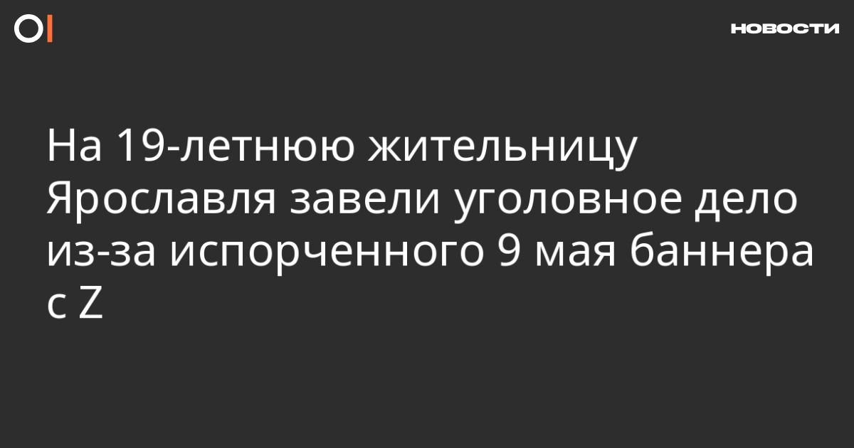 На 19-летнюю жительницу Ярославля завели уголовное дело из-за испорченного в День Победы баннера с литерой Z. Об этом пишут «Коммерсантъ» со ссылкой на пресс-службу МВД и телеграм-канал «Ярославль Главный», который связывают с силовиками.