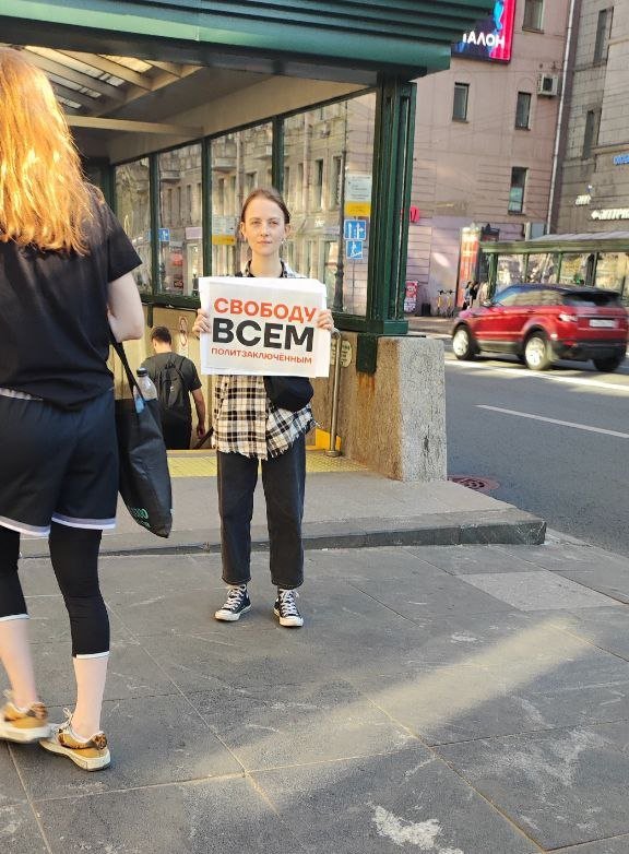 В Петербурге силовики задержали активистку Марину Загородневу, которая вышла в одиночный пикет с плакатом «Свободу всем политзаключенным». Об этом сообщает MR7.ru.