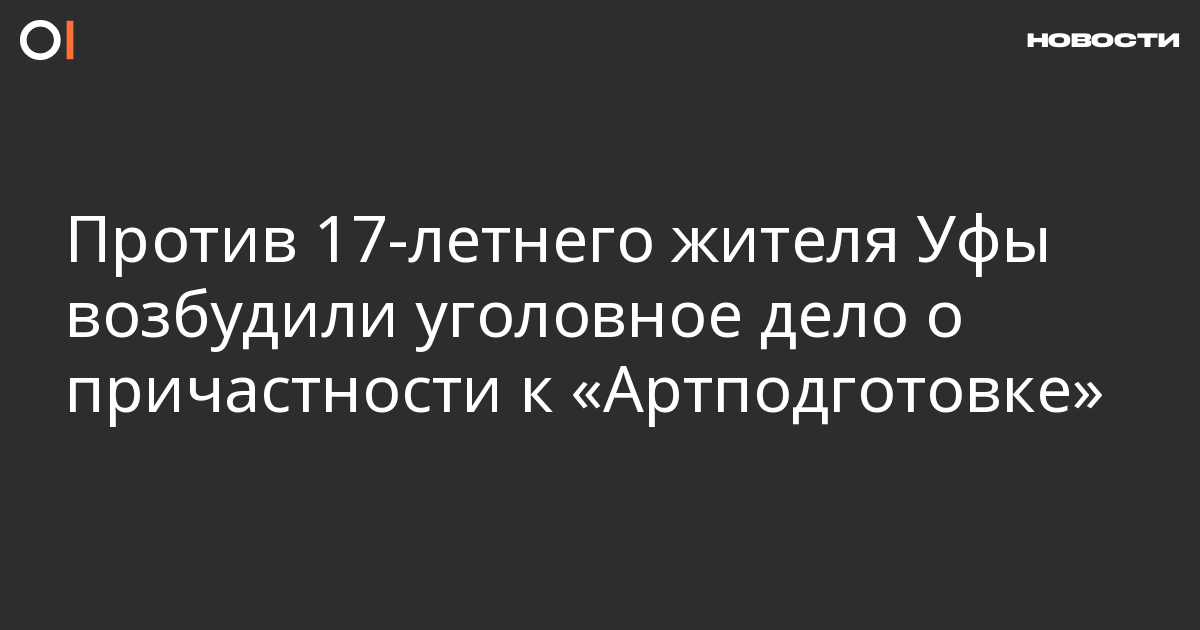 Следственный комитет возбудил уголовное дело против 17-летнего жителя Уфы по двум террористическим статьям. Ему вменяют причастность к деятельности движения «Артподготовка». Об этом сообщает «Идель.Реалии» со ссылкой на пресс-службу УФСБ по Башкортостану.