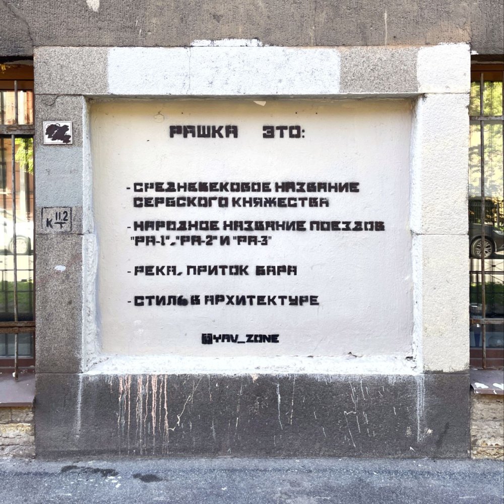 В Петербурге из-за граффити «Рашка» против двоих художников возбудили уголовное дело. Об этом сообщает телеграм-канал «Ротонда».