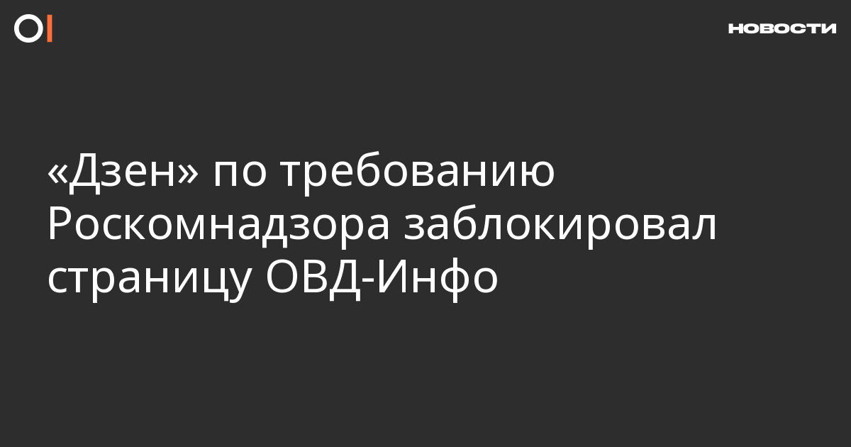 Страницу ОВД-Инфо на платформе «Дзен» заблокировали по требованию Роскомнадзора. Об этом проект узнал из уведомления от сервиса, сейчас страница действительно недоступна.