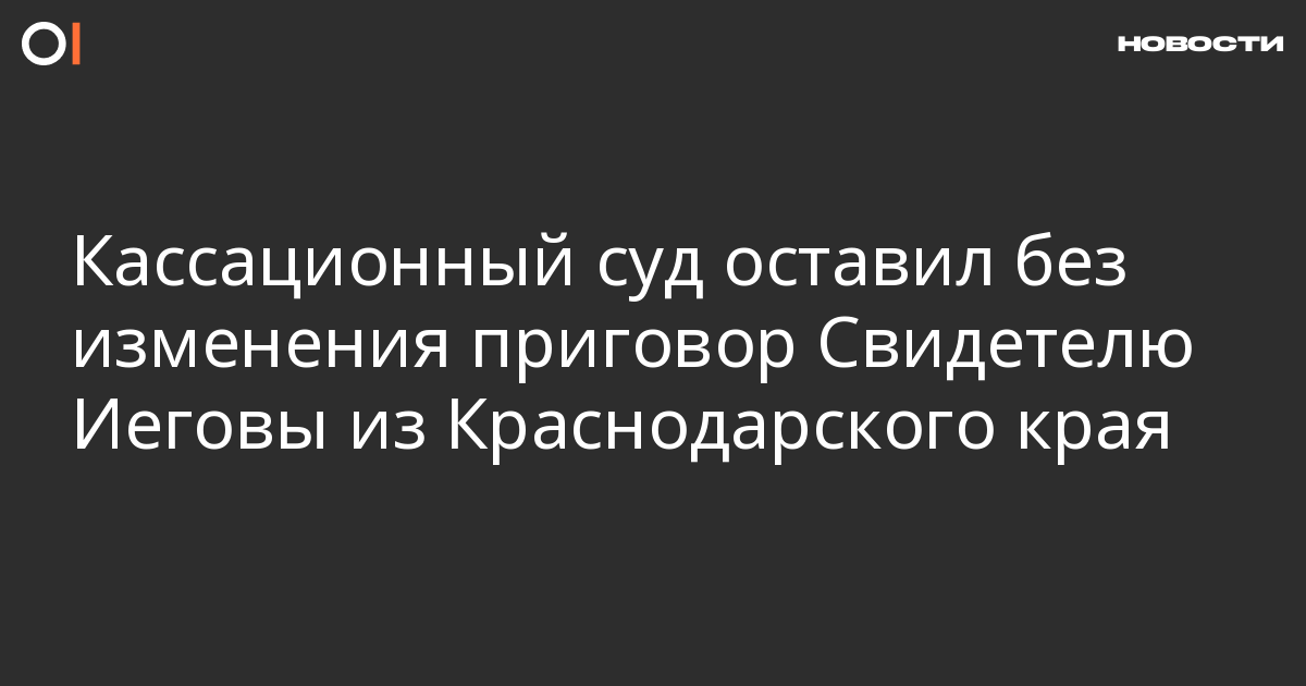 Четвертый кассационный суд общей юрисдикции в Краснодаре оставил без изменения приговор Свидетелю Иеговы из станицы Холмской Александру Николаеву, но отменил дополнительное ограничение свободы после отбытия срока. Об этом сообщает сайт, освещающий преследование верующих в России.