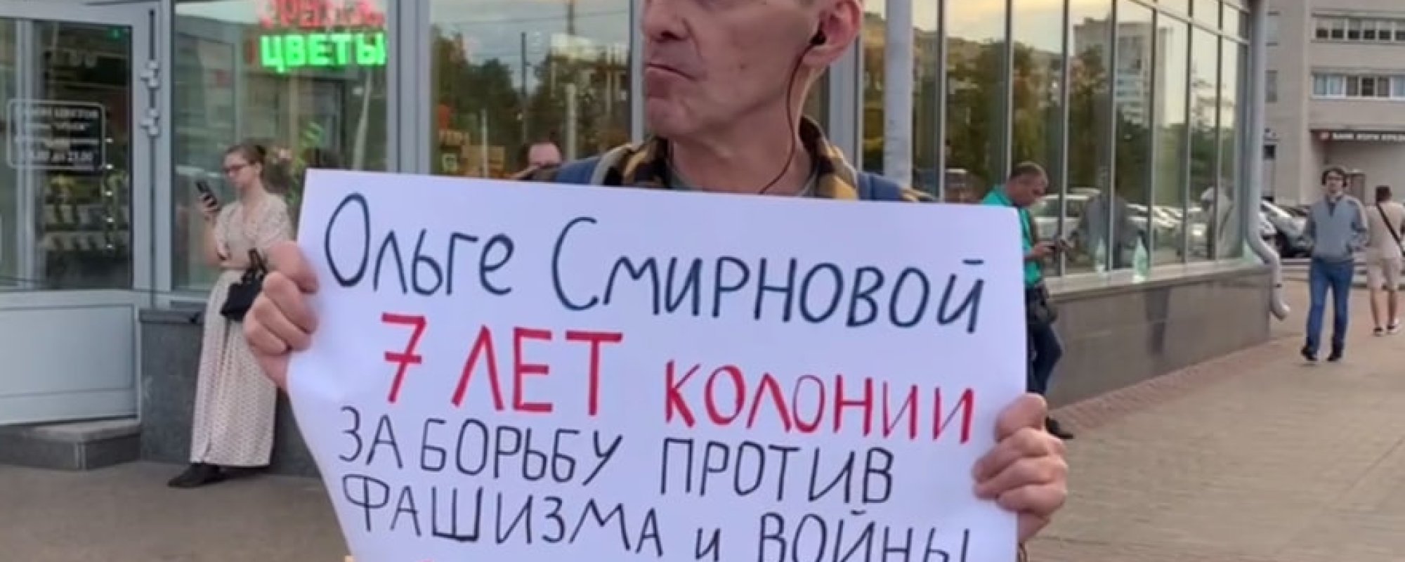 В Петербурге у станции метро Академическая задержали пикетчика Виталия Иоффе, который стоял с плакатом за свободу фигурантки «антивоенного дела» Ольги Смирновой. О задержании активист сам сообщил ОВД-Инфо.