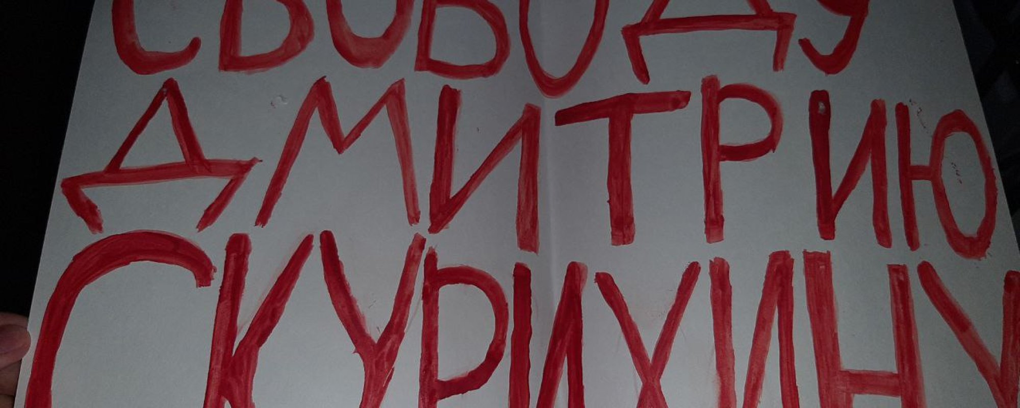 У Гостиного двора в Петербурге задержали Дмитрия Кузьмина, который проводил одиночный пикет с плакатом «Свободу Дмитрию Скурихину». Об этом он сам сообщил ОВД-Инфо.