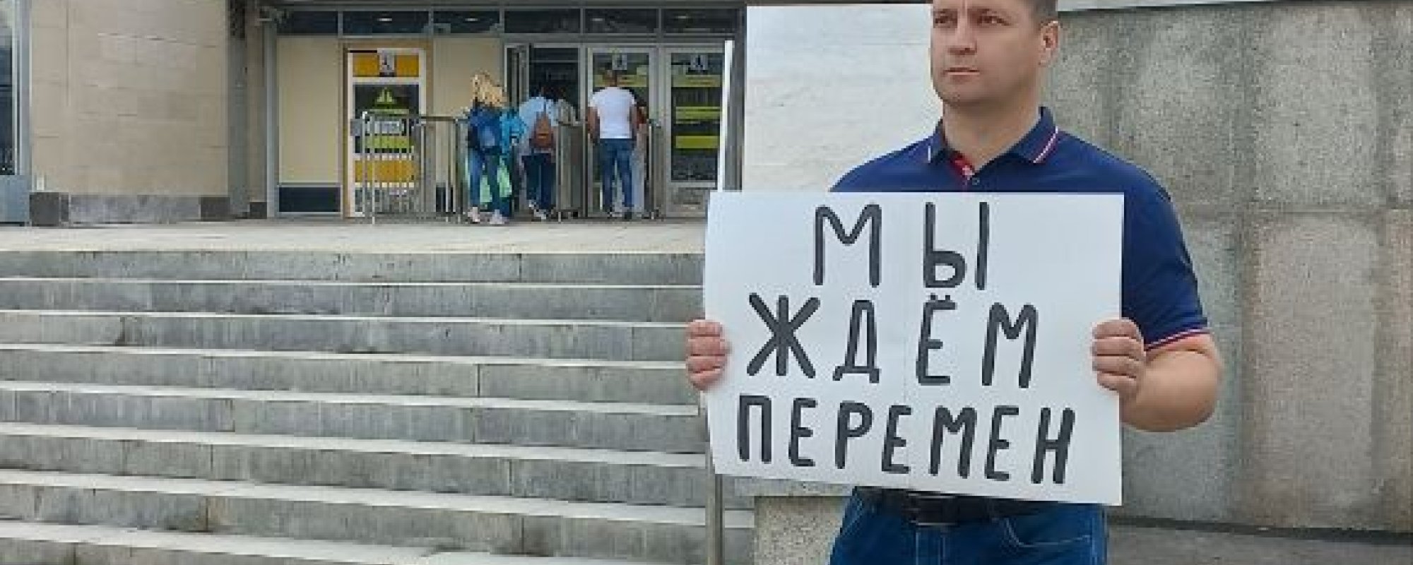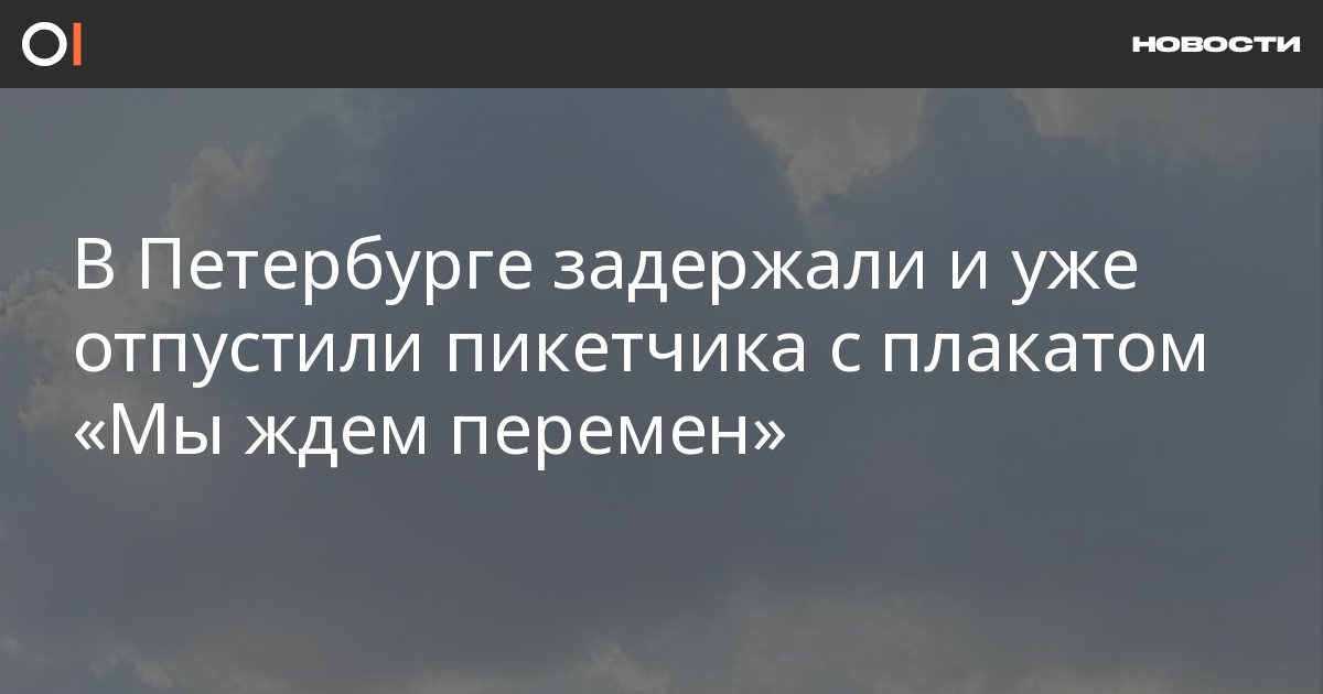 В Петербурге задержали и уже отпустили пикетчика Александра Шахова, который стоял с плакатом «Мы ждем перемен». Об этом задержанный сам рассказал ОВД-Инфо.